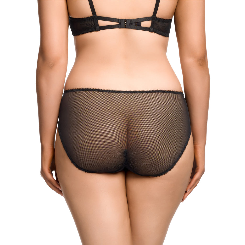 Perfectly named by Dita. Velveteese is evocative lace lingerie with rich velvet detailing. Dita designed a rich, swirling velvet applique on a fine lace ground. The Velveteese bikini features the rich velvet appliqued front and has a soft, stretch fishnet back. Velveteese is sexy refined lingerie.