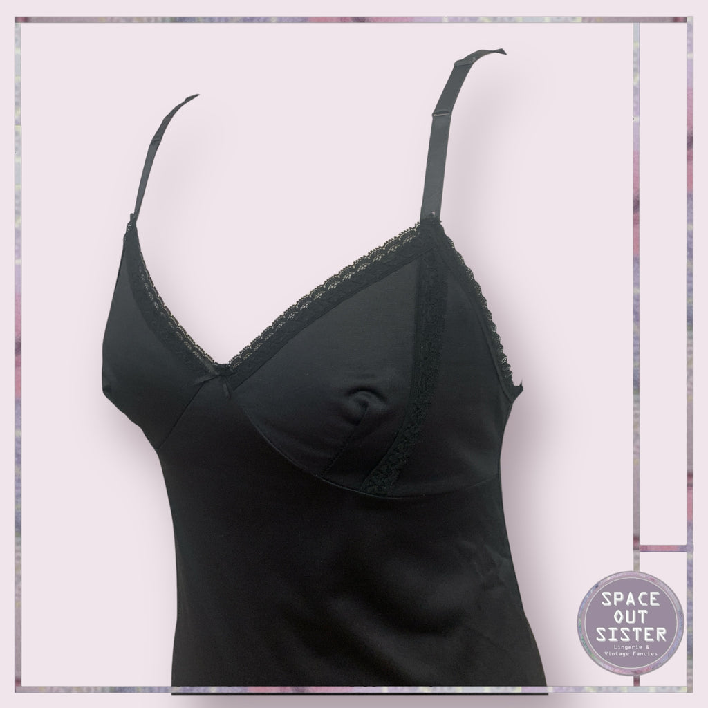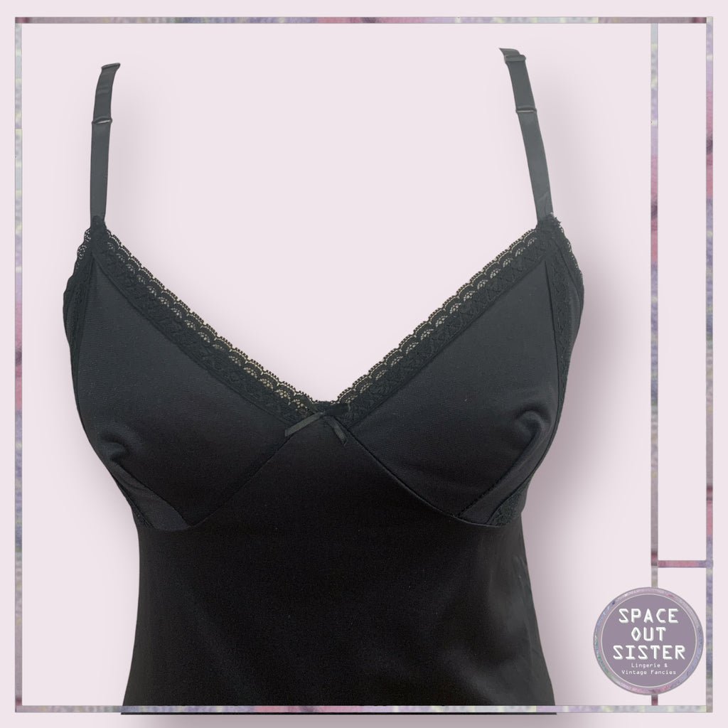 The Vintage Brettlas Black Slip is a stylish and versatile undergarment. Made with adjustable straps, this black slip offers a comfortable and customizable fit. Add a touch of vintage elegance to any outfit with this timeless piece.