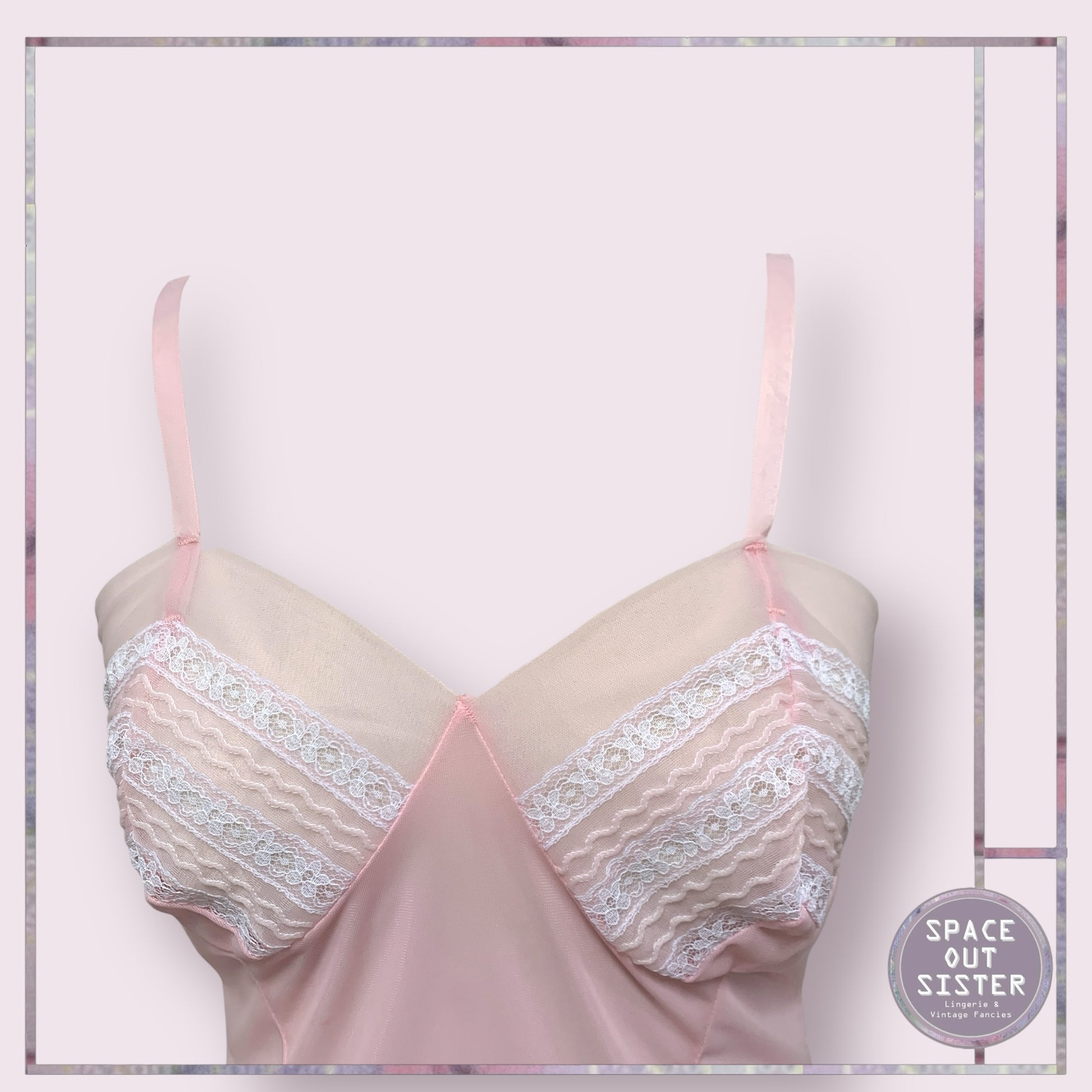 Discover the exquisite allure of the Vintage Concerto Slip, a rare treasure crafted in Dublin, resplendent in delicate pink and white hues. Adorned with ornate lace inserts that cascade gracefully upon the skirt, this nostalgic piece invites the wearer to embrace elegance and artistry, making it a coveted addition to any discerning collection.