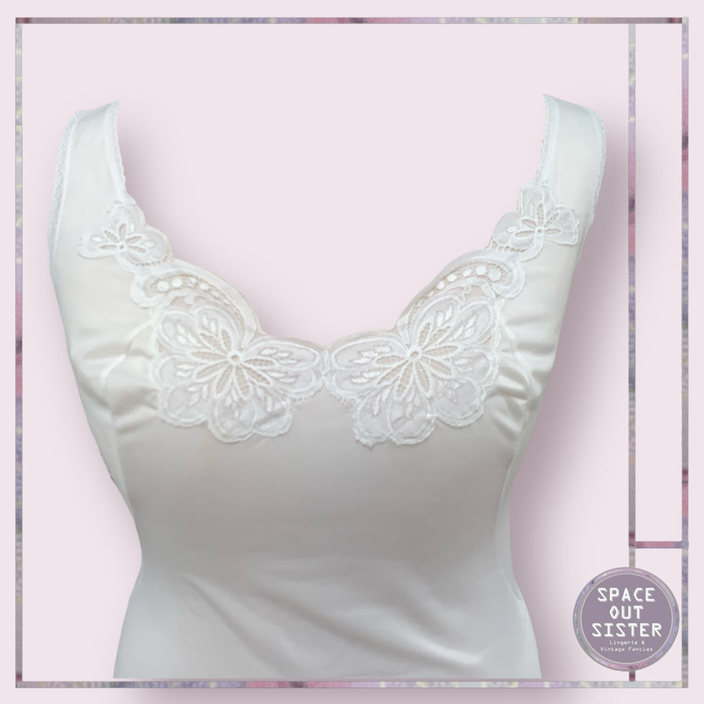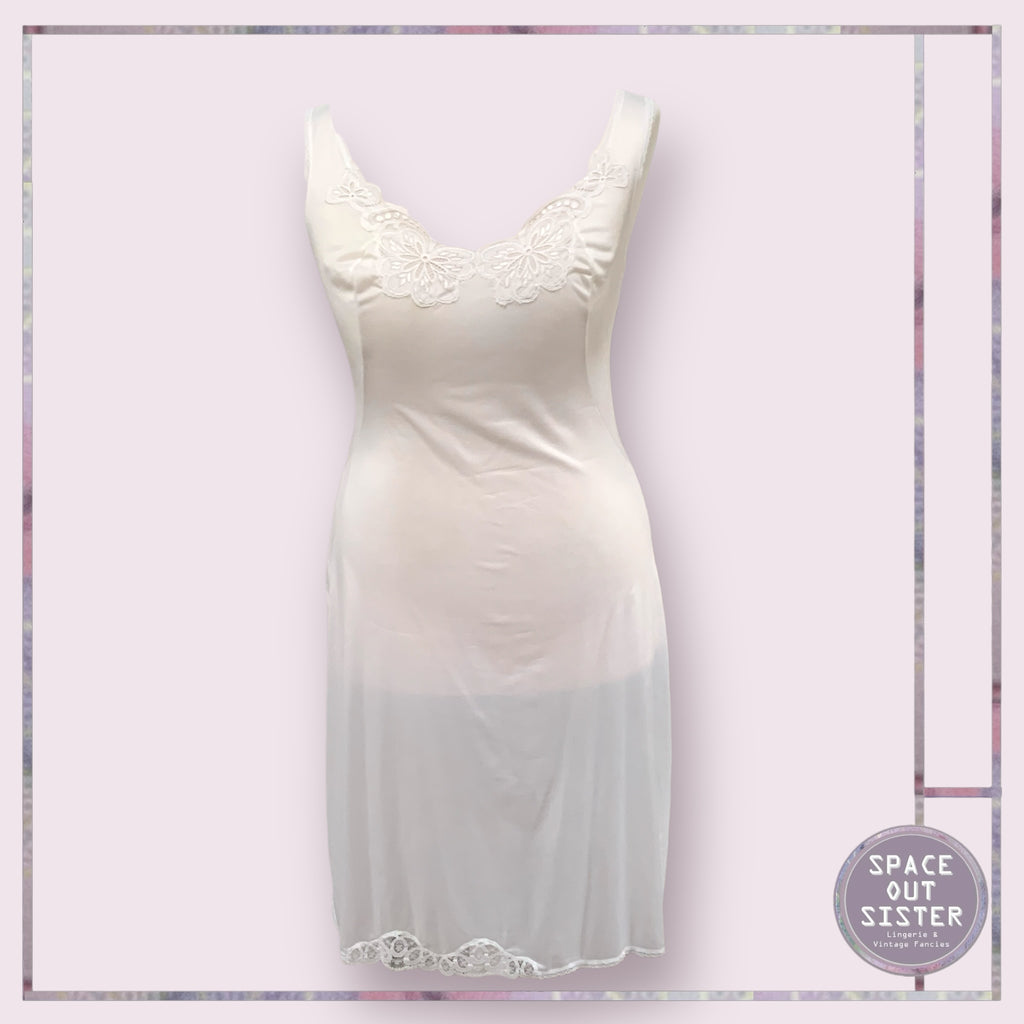 Slip into something a little vintage and a whole lot of lovely! This charming white slip, adorned with lace on the neckline, adds a dash of something special to your foundations.